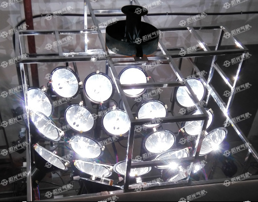 1.1 TRM-PD1H型聚光式太陽(yáng)模擬發(fā)射器(矩陣式)是錦州陽(yáng)光科技發(fā)展有限公司根據(jù)多年太陽(yáng)模擬器生產(chǎn)經(jīng)驗(yàn)開發(fā)的矩陣式模擬光源(稱人造太陽(yáng)),專用于太陽(yáng)能產(chǎn)品室內(nèi)測(cè)試的實(shí)驗(yàn)設(shè)備。TRM-PD1H型聚光式太陽(yáng)模擬發(fā)射器(矩陣式)具有操作簡(jiǎn)單、使用方便,安全可靠的特點(diǎn)。模擬器光源采用(20)組獨(dú)立的聚光點(diǎn)光源,組成矩陣式結(jié)構(gòu),光源的個(gè)數(shù)、位置、光強(qiáng)都靈活可調(diào),以保證有效輻照面積內(nèi)的光均勻性和穩(wěn)定性。采用主機(jī)現(xiàn)場(chǎng)與微機(jī)網(wǎng)絡(luò)聯(lián)合定時(shí)控制功能,可以手動(dòng)或自動(dòng)啟動(dòng)光源,定時(shí)控制發(fā)光時(shí)間,為保證光源質(zhì)量,用太陽(yáng)輻射儀實(shí)時(shí)監(jiān)測(cè)光源的輻射及亮度,由于氙燈照射溫度較高,設(shè)有測(cè)溫報(bào)警及電氣漏電保護(hù)裝置以保證系統(tǒng)的安全。該產(chǎn)品適用于檢測(cè)中心,科研機(jī)構(gòu),太陽(yáng)能產(chǎn)品生產(chǎn)廠家等單位。