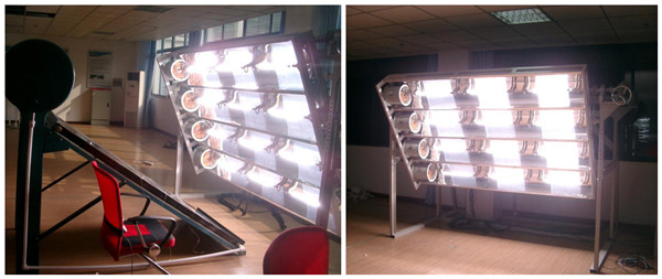 (4)裝有四組大功率風(fēng)機(jī),對發(fā)射光源環(huán)境進(jìn)行強(qiáng)制冷卻,可對太陽能熱水器、集熱器、電池板、太陽能發(fā)電站等產(chǎn)品進(jìn)行直接照射。