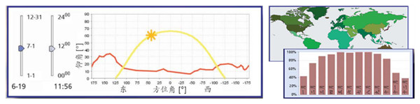 (2)太陽能系統(tǒng)模擬計算統(tǒng)計軟件:可以根據(jù)被測產(chǎn)品的數(shù)據(jù), 模擬其產(chǎn)品在世界各地的應(yīng)用效果分析圖表,并建立產(chǎn)品檢測元件庫。