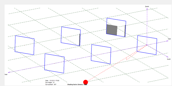 TT追日跟蹤器設(shè)計(jì)高度角為20°~80°,因此在設(shè)計(jì)跟蹤器排布時(shí)需考慮到太陽高度角在大于20°時(shí),跟蹤器之間不會(huì)互相遮擋。