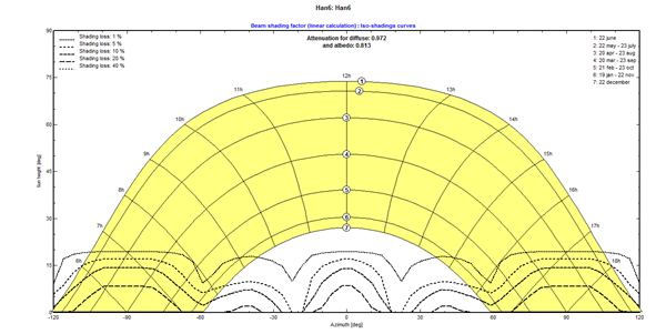 圖12跟蹤器不同俯仰角及方位角時(shí)的遮擋系數(shù)