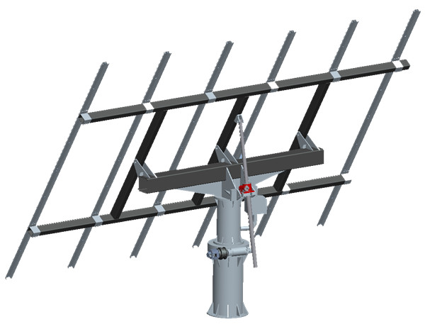根據(jù)追日跟蹤器跟蹤的維數(shù)(從一個(gè)或兩個(gè)方向上跟蹤太陽)我們將跟蹤系統(tǒng)分為單軸跟蹤和雙軸跟蹤,作為高倍聚光光伏發(fā)電系統(tǒng)中,我們使用雙軸跟蹤方式。