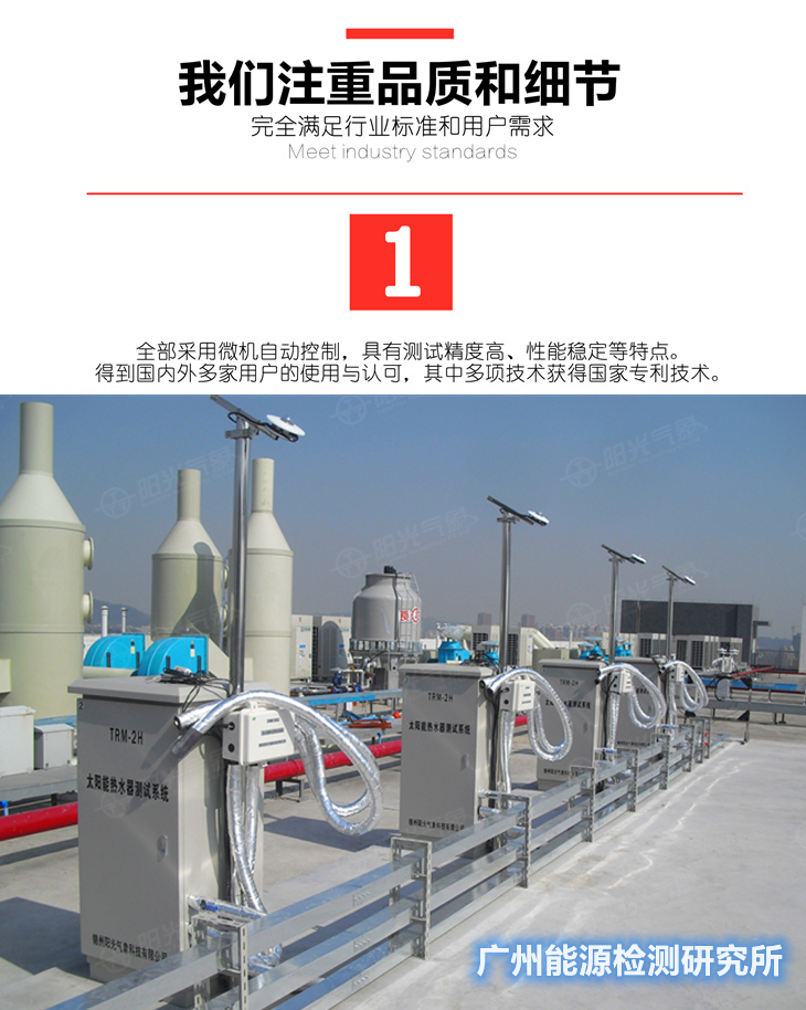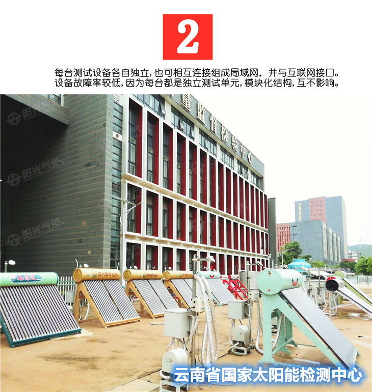 多年來錦州陽光氣象科技公司建設了眾多太陽能檢測中心,均都通過了CNAS認證,得到了認可. 我們根據(jù)多年研究太陽能熱水器檢測設備的經(jīng)驗,結(jié)合了檢測技術(shù),現(xiàn)推出先進的網(wǎng)絡化太陽能測試系統(tǒng), 可滿足廣大太陽能熱水器生產(chǎn)廠,質(zhì)檢所,檢測中心,科研教學等領(lǐng)域的使用。