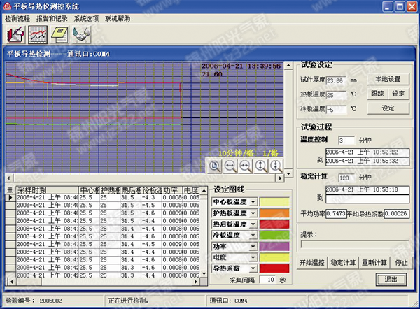 5、智能化的數(shù)據(jù)處理。高度自動(dòng)化的計(jì)算機(jī)數(shù)據(jù)通訊和報(bào)告處理系統(tǒng),平板導(dǎo)熱儀帶有計(jì)算機(jī)通訊接口,可以從計(jì)算機(jī)上設(shè)定熱板冷板控制溫度,實(shí)時(shí)顯示溫度實(shí)際曲線。