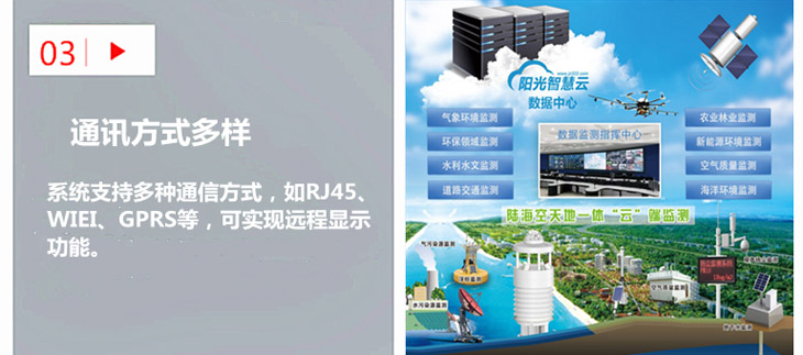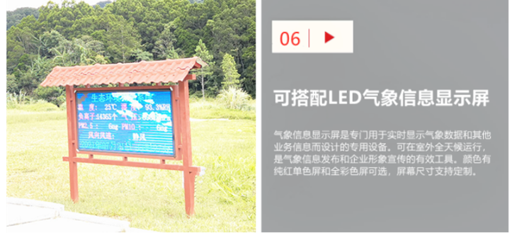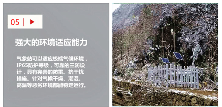 TRM—ZS5型旅游景區(qū)自動氣象站是針對各大景區(qū)及城市用戶的一種實用型自動氣象站,它除可測量常規(guī)氣象要素如風(fēng)向、風(fēng)速、溫度、濕度、氣壓、雨量外,還可對紫外線、特零地溫(即零厘米土面、水泥面、瀝青面、草坪)的觀測,為景區(qū)及城市環(huán)境保護(hù)提供科學(xué)依據(jù)。