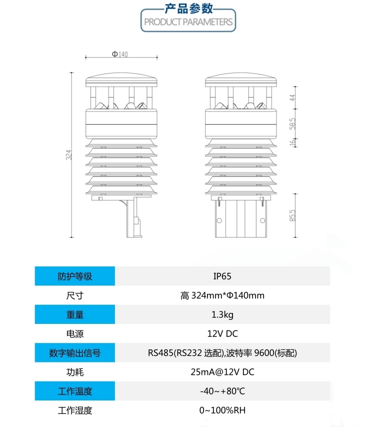 PC-8D型氣象五參數(shù)環(huán)境監(jiān)測(cè)儀是我公司自主研制的一種測(cè)量多要素氣象要素的傳感器,可同時(shí)測(cè)量大氣溫度、大氣濕度、風(fēng)速、風(fēng)向、氣壓等五種主要?dú)庀笠?。其特點(diǎn)是精度高,響應(yīng)時(shí)間快,串口輸出,方便用戶(hù)直接通過(guò)PC或外接儀器進(jìn)行測(cè)量。