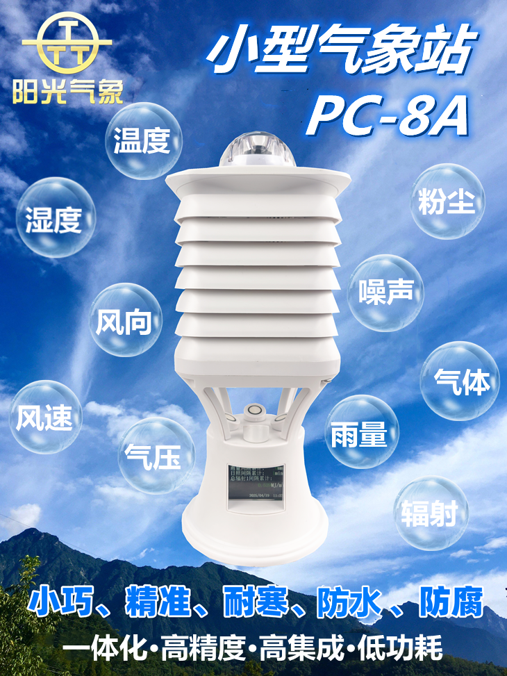 PC-8A小型氣象站是錦州陽光氣象針對各個行業(yè)多場景氣象監(jiān)測研發(fā)生產(chǎn)的一款最新型一體化/小型/多功能的環(huán)境監(jiān)測設(shè)備。該設(shè)備不僅沿襲了公司傳統(tǒng)產(chǎn)品的高精度、高穩(wěn)定性、安裝使用方便等優(yōu)點,最主要的特點就是在一體化小型氣象站的基礎(chǔ)上增加了顯示屏功能,可以實時查看數(shù)據(jù),外形美觀又不失專業(yè)性。