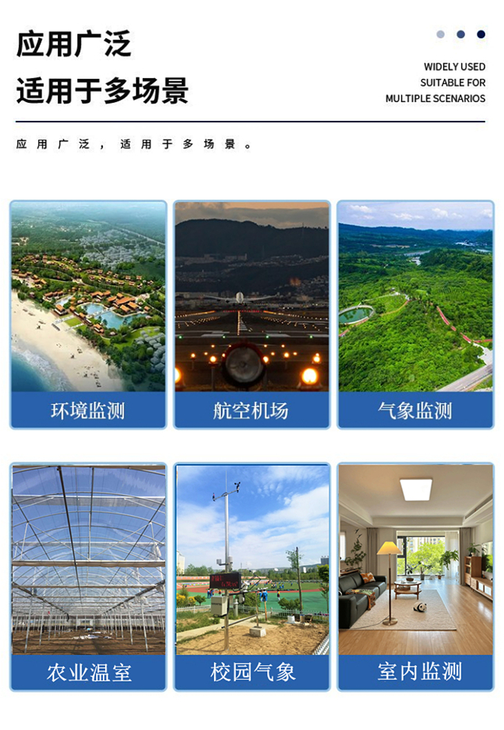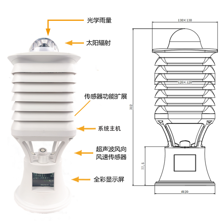 1. 一體化結(jié)構(gòu)設(shè)計:采用一體化設(shè)計,實現(xiàn)了太陽輻射、溫度度、風(fēng)速風(fēng)向、氣壓、降雨量、氣體、噪聲粉塵等多種要素同步監(jiān)測。同時設(shè)備支持定制,可根據(jù)需求增減監(jiān)測要素。