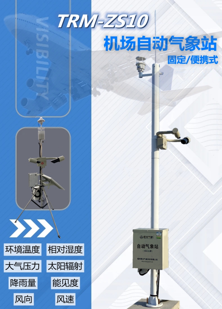 常規(guī)機(jī)場氣象站分為固定式和便攜式兩種觀測方式,固定式常選用分 體結(jié)構(gòu),立桿高度通常為 6-10 米;而便攜式常選用一體化結(jié)構(gòu),小巧重量輕便,隨測隨走,可快速部署到機(jī)場的不同領(lǐng)域,實(shí)現(xiàn)全方位無死角監(jiān)測。