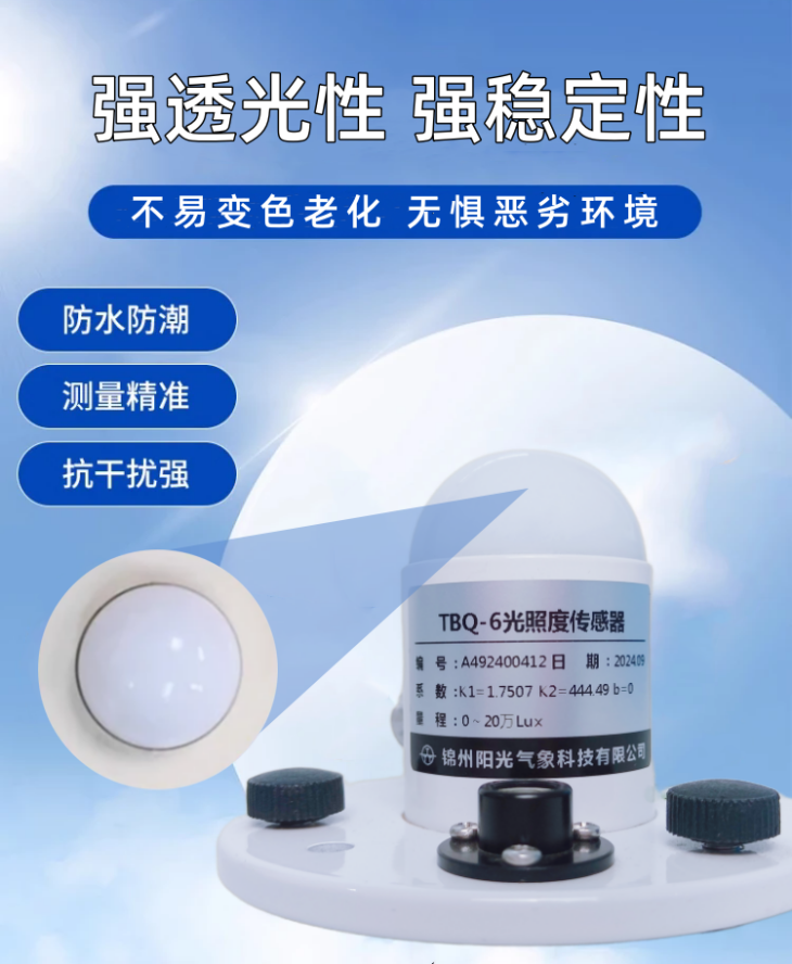 TBQ-6型光照度傳感器具有測量范圍寬、線形度好、防水性能好、使用方便、便于安裝、傳輸距離遠等特點,適用于各種場所。尤其適用于農業(yè)大棚、城市照明等場所。