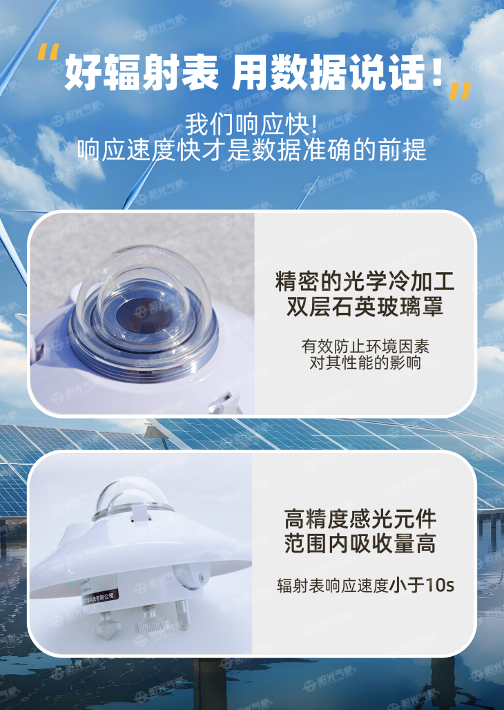 2. 響應(yīng)快:響應(yīng)時(shí)間≤10S,對(duì)太陽(yáng)輻射的微小變化都能迅速響應(yīng),確保數(shù)據(jù)的實(shí)時(shí)性和準(zhǔn)確性。