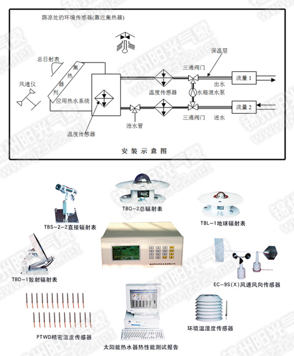 系統(tǒng)執(zhí)行國標GB/T18708 ,GB/T19141,GB/T20095-2006太陽熱水系統(tǒng)性能評定規(guī)范等要求方法測試(熱性能:日有用得熱量,升溫性能,儲水箱保溫性能等指標)。