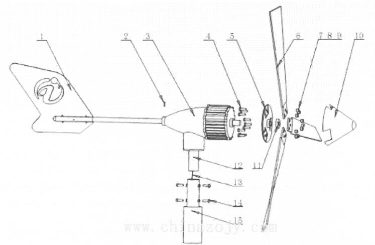 鋼絲拉繩松動(dòng) 葉片固定螺栓松動(dòng) 受外力風(fēng)輪葉片缺損 葉片附著物造成不平衡 |