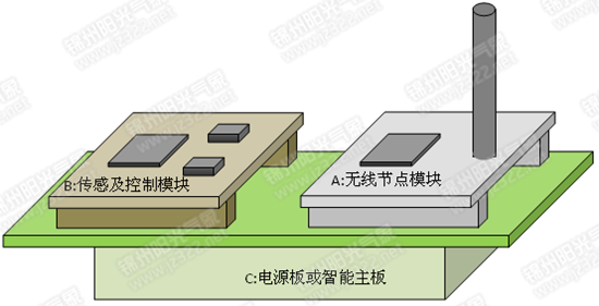 無線傳感網(wǎng)節(jié)點(diǎn)模塊采用模塊化設(shè)計(jì),各個(gè)模塊可自由組合形成針對(duì)不同應(yīng)用的無線節(jié)點(diǎn)。系統(tǒng)包含多個(gè)無線傳感網(wǎng)節(jié)點(diǎn)模塊及一個(gè)無線網(wǎng)絡(luò)協(xié)調(diào)器模塊。