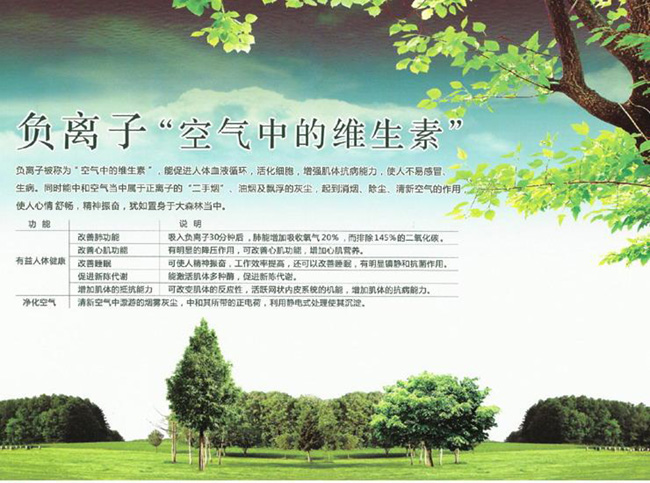 空氣是混合物,由多種分子構(gòu)成,由于自然界的宇宙射線、紫外線、土壤和空氣放射線的影響,空氣中的有些分子就釋放出電子,陰離子??諝夥肿釉诟邏夯驈?qiáng)射線的作用下被電離所產(chǎn)生的自由電子大部分被氧氣所獲得,因而,常常把空氣負(fù)離子統(tǒng)稱(chēng)為“負(fù)氧離子”,負(fù)氧離子帶負(fù)電,它無(wú)色無(wú)味。