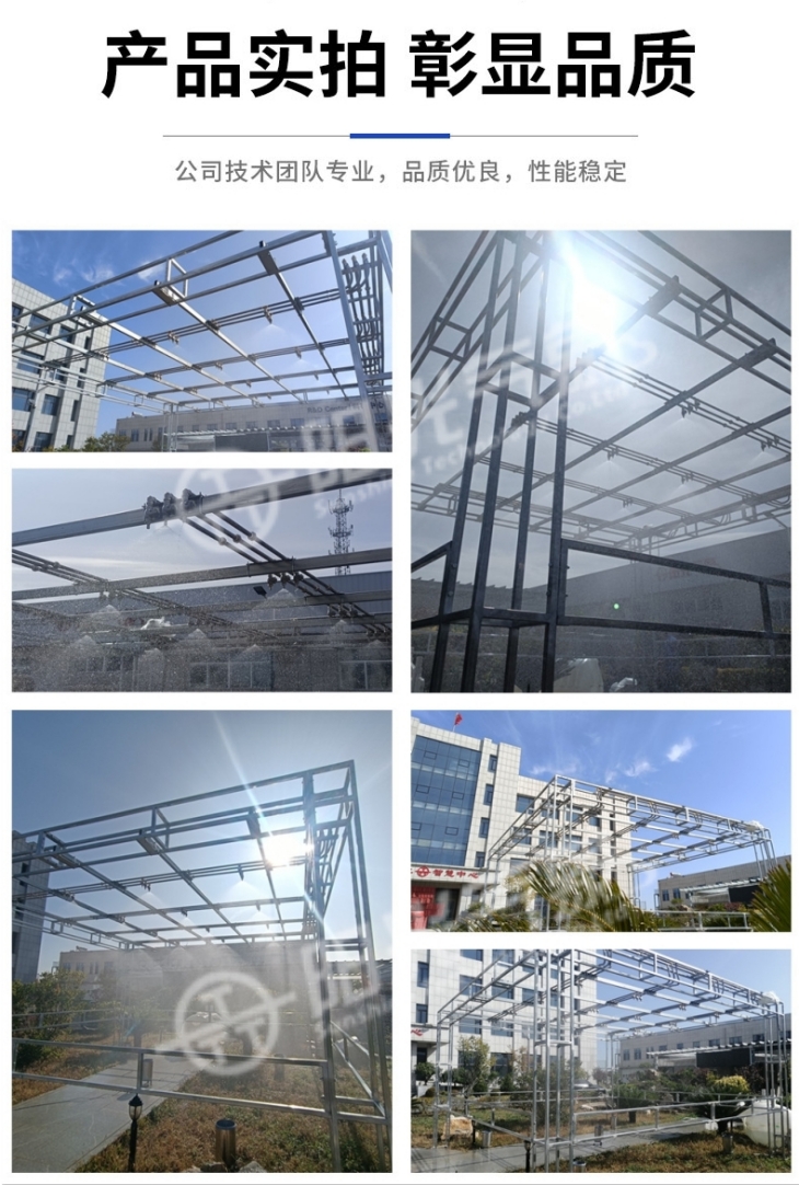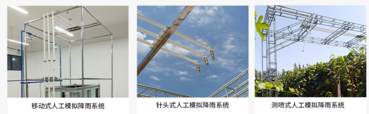 3. 采用美國SPAYING SYSTEMS下噴式降雨噴頭,可使雨滴落地能量與自然降雨高度相似。